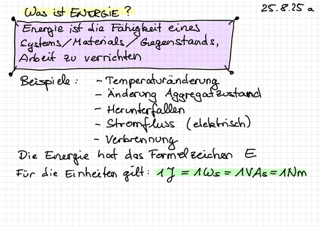 2025-08-25 Definition „Energie“, Wissenswertes über Einheiten