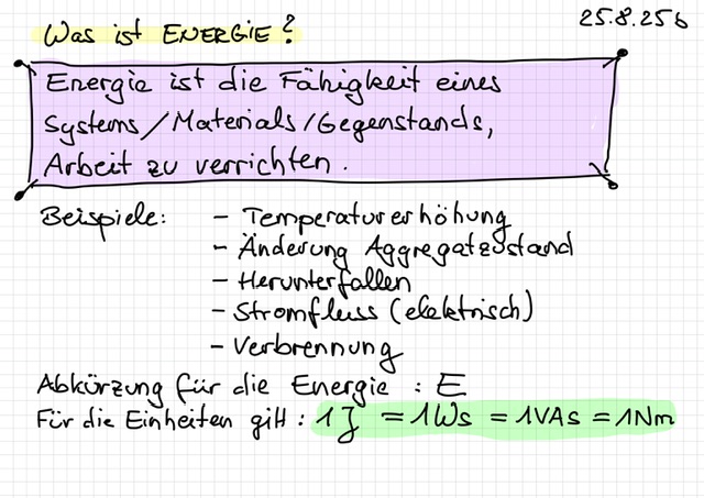 2025-08-25 Definition „Energie“, Wissenswertes über Einheiten